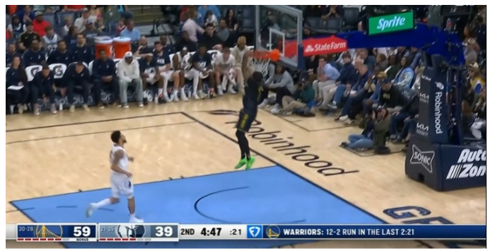 勇士半场三分雨74-53领先灰熊 穆迪11分GG杰克逊14分