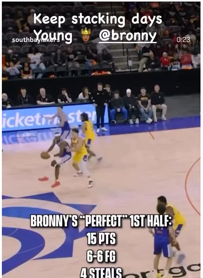 詹姆斯转发布朗尼G联盟集锦 鼓励儿子继续积累